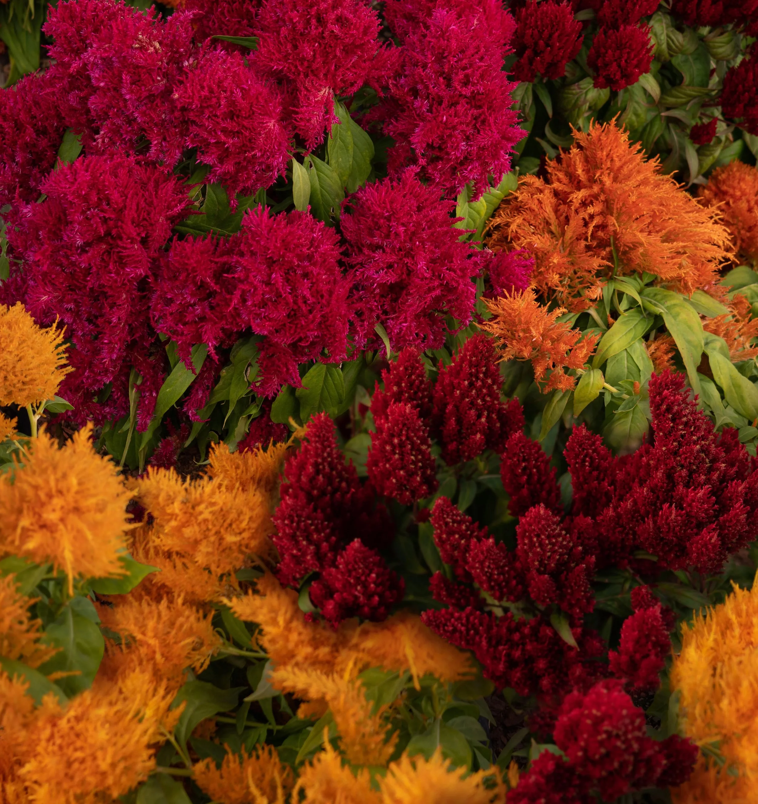 See the colors, heights, sun/shade requirements, and estimated availability of each of the flowers below.